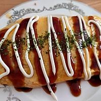 - 7 両端を折りたたみ、返すようにお皿に盛り付けます。お好み焼きソースとマヨネーズをかけ、青のりをかけたら完成です。
