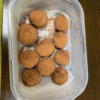 - 5 10等分にしてラップで包み、丸く形を整え、冷蔵庫で30分冷やし固めます。