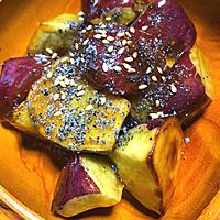 - 5 次にさつまいもを入れタレを絡ませ、黒ごまをかけて出来上がりです。