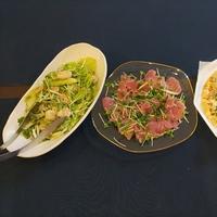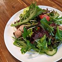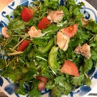 ジューシーなグリルチキンとみずみずしい野菜が絶妙なバランスで、食べごたえ抜群のサラダです。オリーブオイルとポン酢で作る爽やかなドレッシングが野菜の美味しさを引き立て、市販品と間違えるほどの絶品。レタス、水菜、パプリカ、ミニトマト、ブロッコリーなど、お好みの野菜を組み合わせられます。パンに挟んでサンドイッチにしても美味しく、ワインとの相性も抜群です。