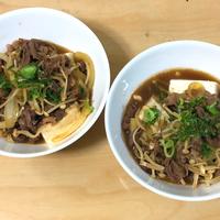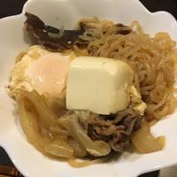 牛肉、えのき、玉ねぎ、木綿豆腐のみ。色がさみしいので小口ねぎを散らして。味がよく染みこんでおいしかったです。