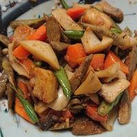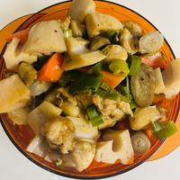 冷蔵庫の野菜室に少しだけ残った蓮根とお正月に使うつもりで買ったゴボウと生協さんで買ったボンジリが冷凍室に丁度あったので作りました。使いかけのエリンギと色味が寂しかったのでいんげんを一緒に入れました。簡単に出来て主人と娘にも好評でした。