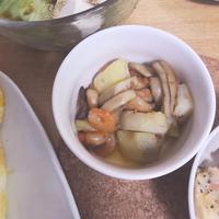 アンチョビフィレは入れなかったです☆舞茸の味がオイルと合っていて美味しい☆ポテトもホクホク☆エビはあまり旨味が出ていなかった、、