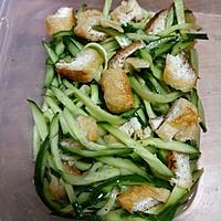 きゅうりが半分しかなかったのでキャベツの千切りを足しました。6時間ほど冷蔵庫で寝かせてから食べましたが水っぽくなくて油揚げにタレが染み込んでいておいしい。