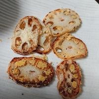 しっかり酢水につけたレンコンのシャキシャキ感とパリパリとしたチーズの香ばしさが合って、頬がとろけそうでした。
