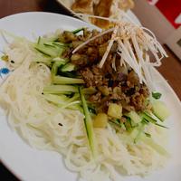 豚の代わりに鶏ひき肉で試してみました。ネギがないので、きゅうりを上に(笑)薬味はしょうがを入れてみました。