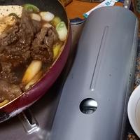 - 4 砂糖を入れ全体になじんだら、料理酒、しょうゆを入れて中火で加熱し、ふつふつとしてきたら牛ロース肉を端に寄せ、2を入れます。