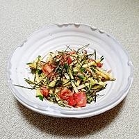 - 1 きゅうりとミョウガを千切りし、ミニトマトは半分に切ります。