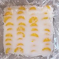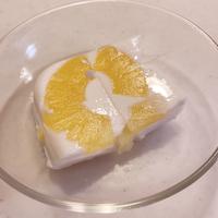 - 3 型にみかん缶を並べて2を流し入れ、粗熱を取り冷蔵庫で1時間程度冷やします。