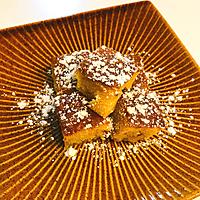 - 6 型に流し入れ、170℃のオーブンで15分焼きます。型から取り出して粗熱を取り、お好みの大きさに切り、粉糖をかけて出来上がりです。