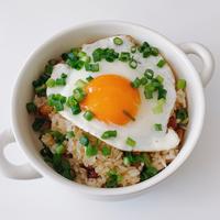 事前にごはんと調味料を混ぜ合わせる事で、ごはんに味がなじみやすく、手早く仕上がりますよ。 調味料を混ぜたごはんを強火で炒めると焦げやすいので、中火で手早く仕上げてください。