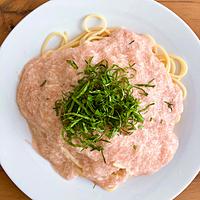 思いのほか明太子ソースが多くなりパスタが見えなくなってしまいました( 笑 )