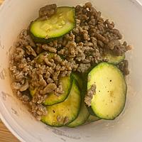 手順3で、牛豚合びき肉の火が完全に通る前にズッキーニを加える事で、お肉に火が入り過ぎてパサつく事が防げます。