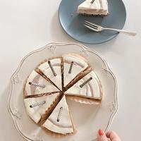 レアチーズケーキに、ココアを混ぜ込んだ生地を加えて、マーブル模様になるように仕上げました。しっかりと混ぜてしまわないので、味も、見た目もお楽しみいただけますよ。普段のおやつや、おもてなしのデザートにいかがでしょうか。
