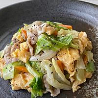 片栗粉をまとわせた豚バラ肉がしっとりジューシーな食感を生み、キャベツのシャキシャキ感と絶妙にマッチします。ふわふわの玉子と中華風の味付けが食欲をそそり、ご飯がとまらない一品に仕上がります。シンプルな調味料でも、ごま油の香りと黒コショウのアクセントが効いた本格的な味わい。人参やしめじなどを加えてアレンジも楽しめる、手軽で美味しい定番レシピです。
