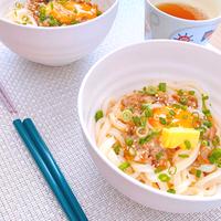 うどんを使った簡単な料理を考案いたしました。包丁やまな板を使わなくってもできる!簡単レシピです。お好みで温泉卵を乗せて食べるのもおすすめです。 パパッと作って腹ごしらえをしたい日には、簡単にできてお腹も満たされるボリューム満点なので、ぜひお試しくださいね!