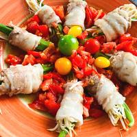 中華風トマトダレでさっぱり!オクラともやしのレンチン豚巻き レシピ・作り方