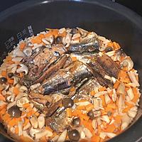 - 4 サンマ蒲焼き缶の身を入れて炊きます。