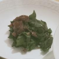 まだ鰹節をのせてませんが、、笑!独特の臭みのある明日葉ですが、美味しくいただきました(^ ^)梅干しの浸かっている液体も一緒に混ぜてつくりました〜!