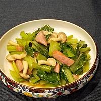 - 4 フライパンにごま油をひいて中火で熱し、1の茎、2、3、1の葉の順に入れて都度炒めます。