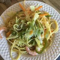 12Aug19 ガーリックエビパスタ 美味しかった☺️ 家族と食べた