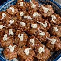 マヨのせミニハンバーグのご紹介です。ミニハンバーグにちょこんとのせたマヨネーズが見た目にもかわいらしい一品です。一口大で食べやすいので、ホームパーティーやおもてなしのときなどにもおすすめですよ。ぜひ試してみてくださいね!