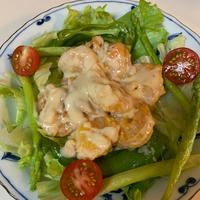 - 4 2と3を和えたらサニーレタスを敷いたお皿に盛り付け、小ねぎを振りかけたら完成です。