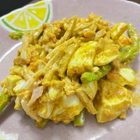 ゴロゴロ!アスパラとゆで卵のカレーマヨ和え レシピ・作り方