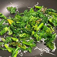- 3 菜の花がしなっとしてきたら、しらすと塩こしょうを加えさっと炒めて完成です。