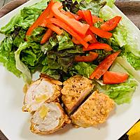 チーズを肉で巻くのと(結局チーズのポケットの切れ目を入れた)アーモンドの衣をつけるのに苦労しました。