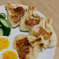 - 4 中火に熱したフライパンに3を入れ焼きます。表面がこんがりとしたら火から下ろします。