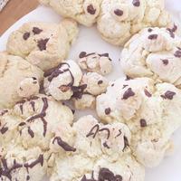 - 2 天板にクッキングシートを敷き、1をくまの顔、耳、鼻に成型して並べます。