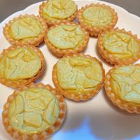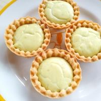 - 5 市販のミニタルト台に流し入れ、冷蔵庫で30分程冷やします。オーブンを160℃に予熱します。