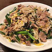 - 9 2のしいたけ、ニラを加えてさら2分程度炒め、5、6を加えて全体に馴染むまで炒めます。