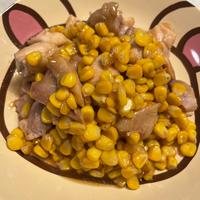 コーン缶で。味は美味しかったですが、早めに鶏肉切り上げないと固くなっちゃうので注意が必要です。