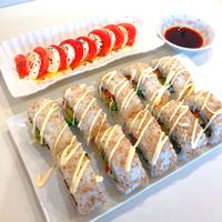 ベビーリーフがなければ、レタスなど他の葉物でも代用可能です。 切るときは、ご飯がついてこないように、その都度包丁を水で濡らしてからカットして下さい。 具材はお好きなものにしてアレンジしても美味しく召し上がれます。 醤油、マヨネーズの他にも、スイートチリソースをつけるのも、オススメです。