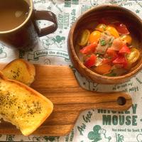 生ハムとトマトのバジル和えのご紹介です。生ハムの旨味と、ミニトマトの程よい酸味、バジルのさわやかな風味が相性よく、お酒のおつまみにもぴったりな一品です。時間がない時でも、さっとお作りいただけますよ。ぜひお試しくださいね。