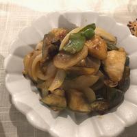 丼にせず、炒め物として。ピーマン、玉ねぎを追加。