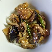 わさびでピリッと なすと鶏肉のバター醤油炒め丼 レシピ・作り方