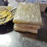 - 5 食パン2枚に有塩バターをぬり、4をのせ、残りの食パン2枚を重ね、お好みの大きさに切り分けたら完成です。