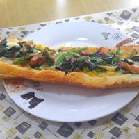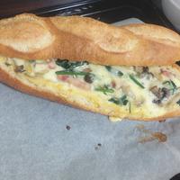 ミニフランスパンだったので具材は少なめ、卵液は半量にしてくり抜いたパンの中身も細かく千切って少し入れました。外はカリッとして中はふんわりで美味しかったです^ ^