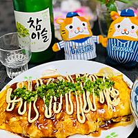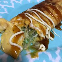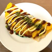 具材はキャベツの千切りと豚バラ、チーズにしました。卵生地の味がすごーくちょうどよくて、チーズの塩気と相性抜群でした。