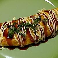 - 3 中火に熱したフライパンにサラダ油をひき、2を入れて焼きます。半熟状になったら1、ピザ用チーズをのせて包み、長ねぎがしんなりするまで弱火で30秒程熱します。
