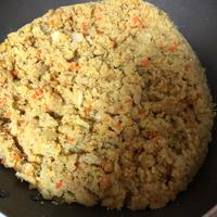 - 2 中火に熱したフライパンにおからを入れて5分程炒め、パラパラになったら一度取り出します。