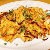 手順3では、薄力粉を入れたら混ぜ過ぎないように気をつけて下さい。切るようにさっくり混ぜるとカリッとした仕上がりになります。 今回は直径20cmのフライパンを使用しました。