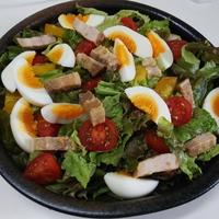 - 4 1とミニトマトとゆで卵をトッピングしたら完成です。