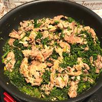にんじんの葉と豚バラ肉のごま炒め レシピ・作り方