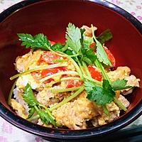 - 6 器にごはんを盛り付け、5をのせます。三つ葉をのせて完成です。
