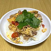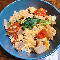 見た目は赤・黄・緑と鮮やかで、味はトマトの酸味がアクセントになって美味しかったです!普通の他人丼とまた違う美味さがあり、野菜も摂れるので良いなと思いましたw