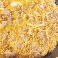 - 5 全体がなじんだら中火のまま、3の1/3量をのの字を書くように回し入れて菜箸でなじませ、もう一度同様に繰り返します。残りの3を加えて卵が半熟状になったら火から下ろし、ごま油を回し入れます。